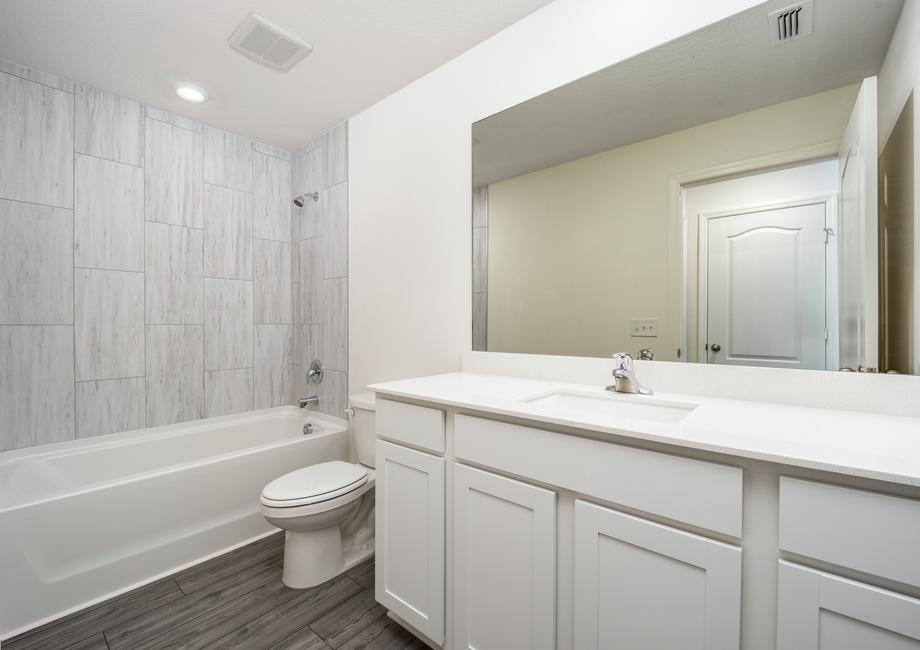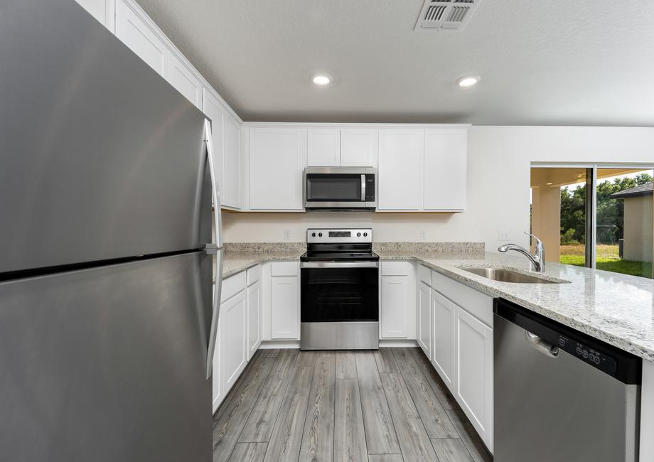 The Ibis is filled with the designer upgrades as part of our CompleteHome™ package! Beautiful front yard landscaping welcomes guests. In addition, the kitchen features modern white wood cabinets, granite countertops and stainless steel appliances. Smart home technology, including a programmable thermostat and double-pane insulated windows are also featured throughout the home for energy-efficiency.