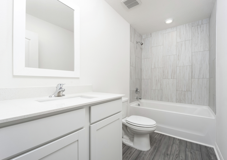 Enjoy a luxurious master retreat that creates the perfect place to unwind each day with the Mangrove. The private upstairs master retreat fits a king-sized bed and dresser. Modern finishes in the bathroom, including a spacious two-sink vanity and a large shower give it a luxurious feel. In addition, the sizeable walk-in closet offers more than enough space to fit any wardrobe.