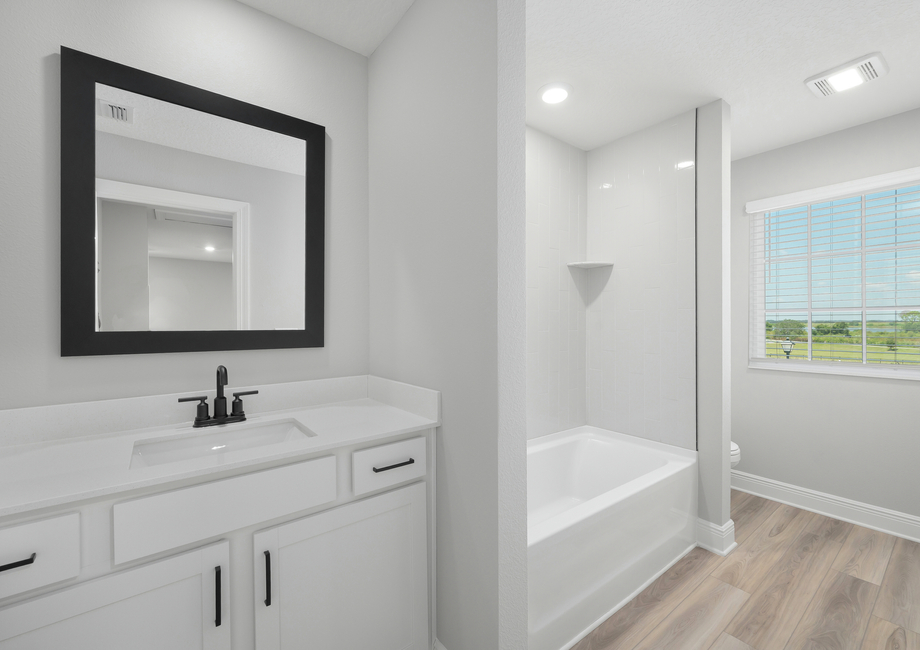 Enjoy designer upgrades as part of our CompleteHome Plus™ package featured in the Myrtle floor plan. Stainless-steel appliances, beautiful quartz countertops, subway tile backsplash and white cabinets with matte black fixtures are just a few features in the chef-ready kitchen. Throughout the home you will also find smart home and energy-efficient technology including a programmable thermostat and double-pane windows fill the home!