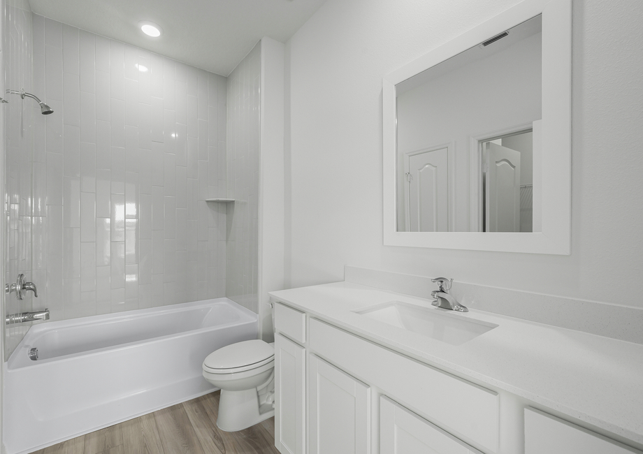 The Pecan floor plan is sure to surpass all expectations with a variety of upgrades included at no extra costs. Enjoy having brand-new stainless steel appliances, including a refrigerator, stove, dishwasher and microwave. Beautiful grey granite countertops and white cabinets are just a few other remarkable upgrades that complete the kitchen. In addition, a programmable thermostat, designer coach lighting, double-pane windows and a Wi-Fi-enabled garage door opener give even more features and finishes that you did not know you needed.