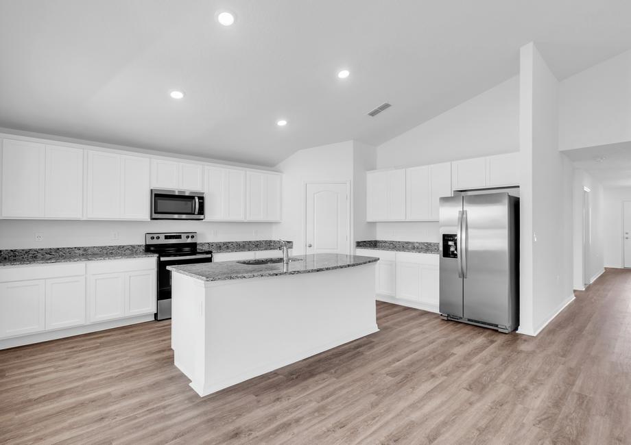 The heart of the Caprice is its open kitchen with an island, catering to the culinary enthusiast in you. Equipped with modern Whirlpool® appliances and ample counter space, the kitchen becomes the focal point for family gatherings and entertaining guests. The central island not only provides additional workspace but also serves as a gathering spot for casual meals or engaging conversations, making it a hub of activity for all to enjoy. Adjacent to the kitchen is the dining area, offering a cozy and intimate space for family meals. Whether it's a hearty breakfast or a delightful dinner, the dining area fosters a sense of togetherness and warmth, creating cherished memories around the table.