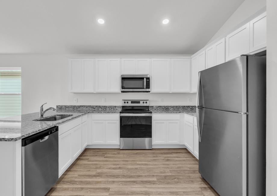 The grand entrance of the Hillcrest sets the tone for the elegance that awaits within. As you step inside, you are greeted by a spacious dining room, the perfect setting for hosting memorable gatherings with your loved ones. Whether it's a festive holiday feast or a simple family dinner, the dining room exudes a welcoming ambiance, fostering cherished moments and creating lasting memories. The heart of the Hillcrest lies in its gourmet kitchen, a true culinary haven for aspiring chefs and seasoned cooks alike. Overlooking the large family room, the open-concept design ensures you're always at the center of the action, allowing you to engage with family and friends while preparing meals. The kitchen features modern appliances, ample counter space, and elegant cabinetry, making meal preparation an enjoyable experience.