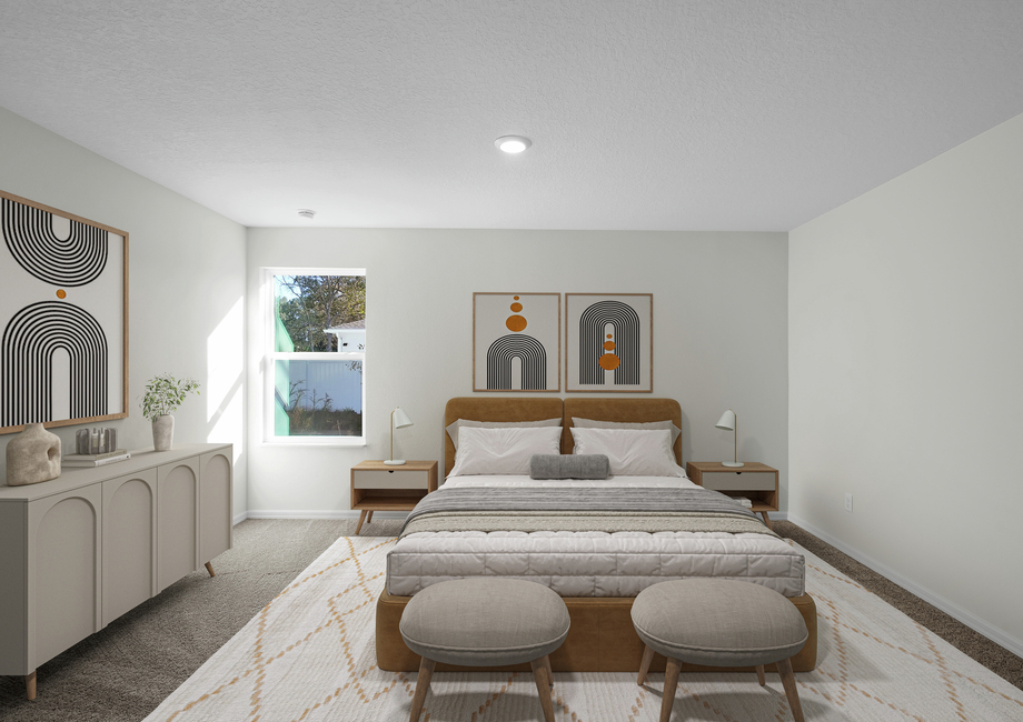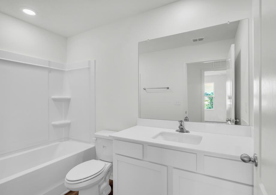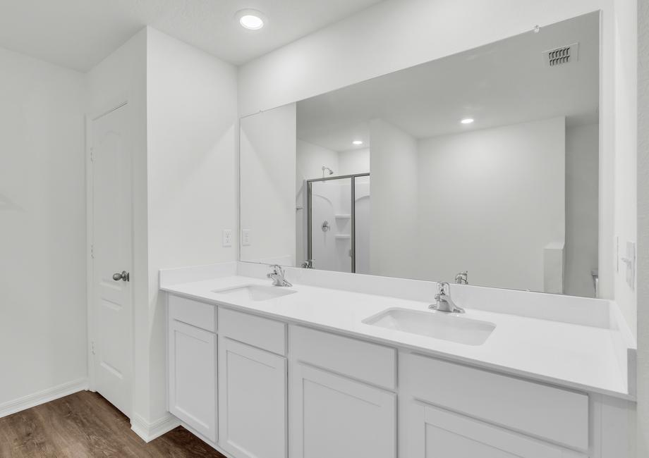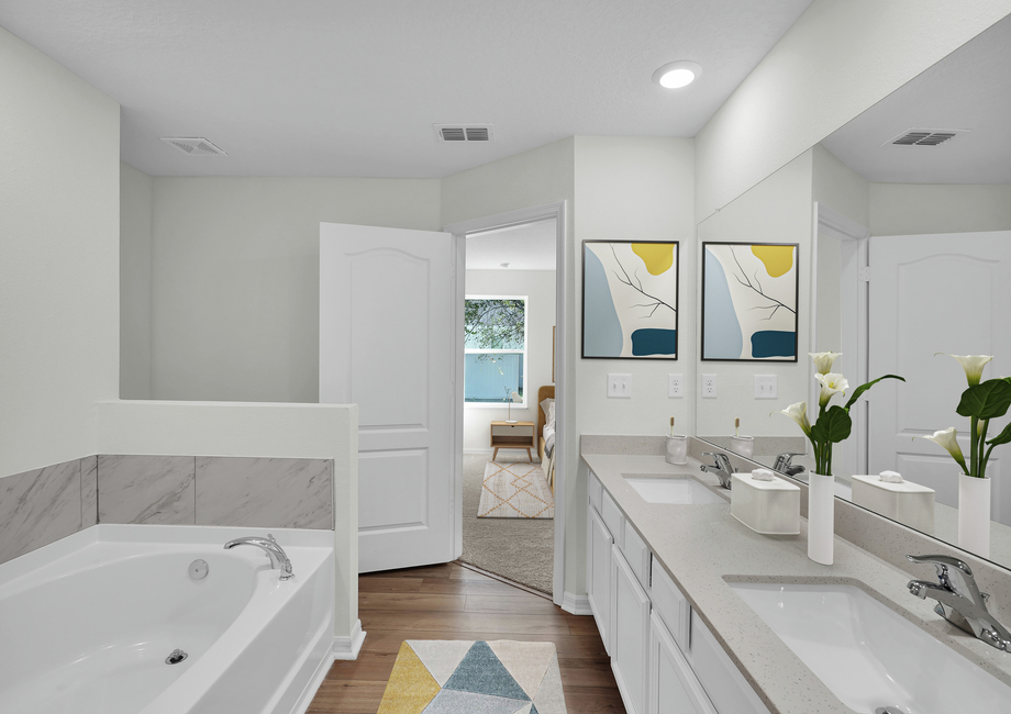 The master bedroom of the Hillcrest is a luxurious retreat, designed to provide the ultimate comfort and relaxation. The spacious walk-in closet offers plenty of storage space, keeping your belongings organized and easily accessible. The master bath is a true indulgence, featuring a soaker tub that allows you to soak away the day's stress and a walk-in shower with a dual sink vanity, combining both convenience and elegance.