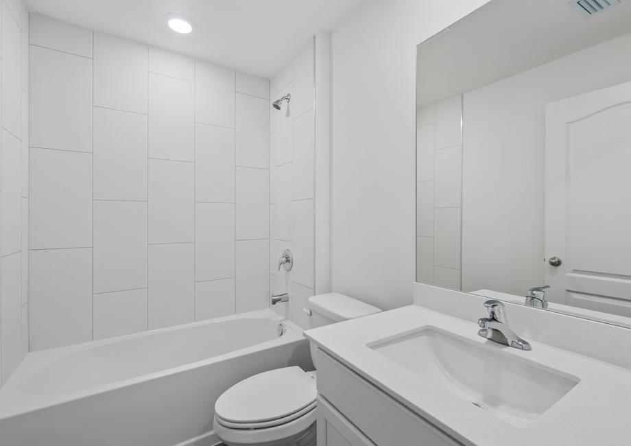 The Brickell home at Palm Bay highlights thousands of dollars’ worth of upgrades in every direction. As part of LGI’s CompleteHome™ package, the Brickell kitchen includes a full suite of all new energy-efficient Whirlpool® appliances and gorgeous 36” upper-wood cabinets with crown molding. An outlet with USB charging capability and brushed nickel hardware are also premier features found in the heart of the home. In addition, a two-car garage with a Wi-Fi-enabled garage door opener gives you the efficiency and additional control of your very own home. Last but not least, gorgeous front yard landscaping and a sodded back yard add the finishing touches of the Brickell by LGI Homes.