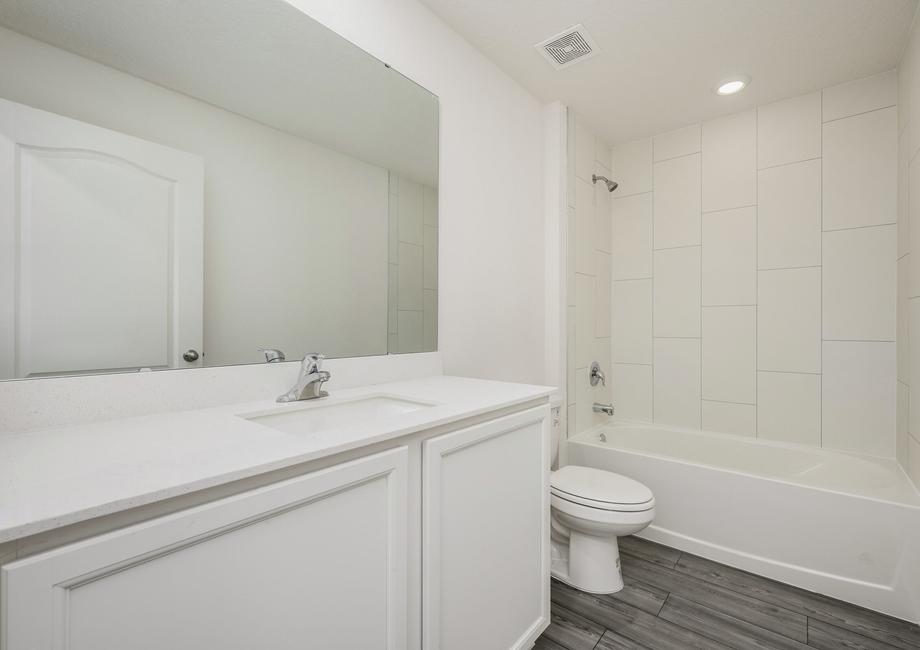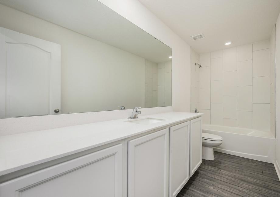 The master bedroom in the Capri home serves as a true retreat. This secluded space features double-pane windows and a completed master bathroom. The master bath highlights a double-sink vanity, a large bathtub/shower and a massive walk-in closet you will have to see to believe. The affordable Capri by LGI Homes comes move-in ready so that you can look forward to enjoying this dream home as soon as possible.