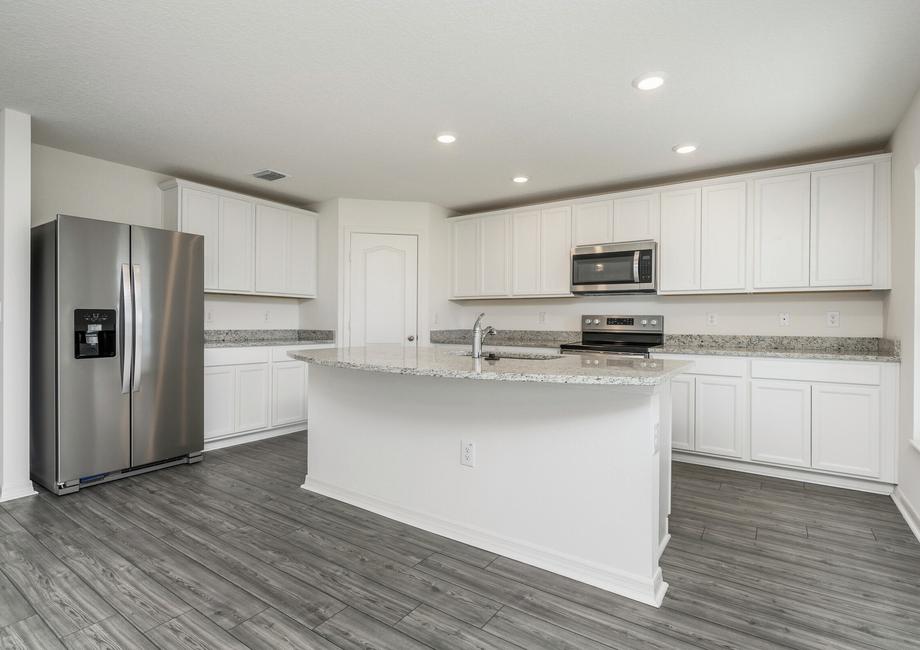 The Capri floor plan includes LGI Homes’ CompleteHome™ package, featuring impressive upgrades included at no extra cost to you. Through the energy-efficient Whirlpool® appliances, such as the refrigerator, stove, microwave and Moen® faucets, homeowners and guests can use the chef-ready kitchen upon moving in. In addition, residents will be able to enjoy the convenience of moving into a new home with beautiful front yard landscaping and a Wi-Fi-enabled garage door opener.