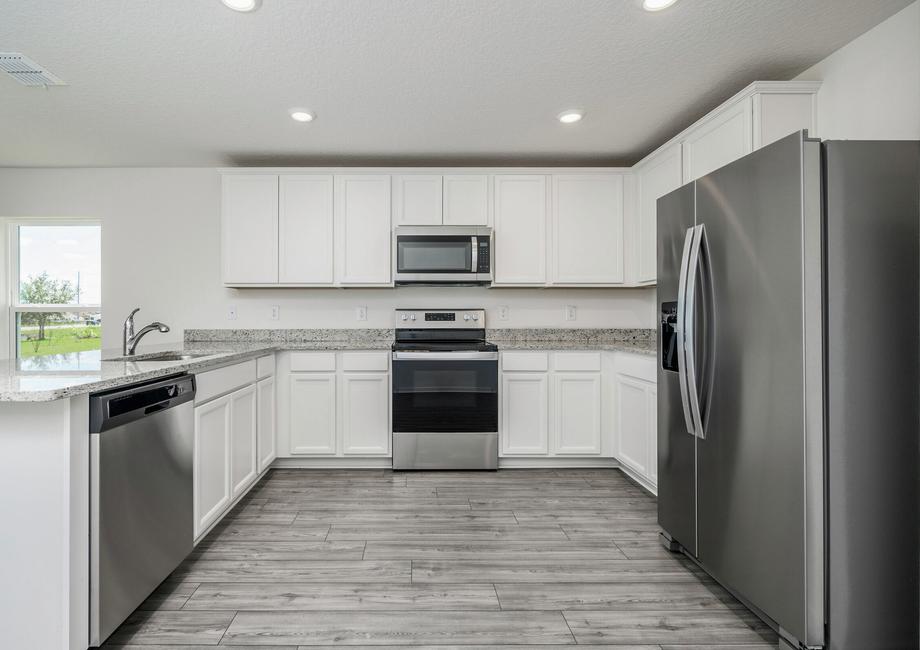 Crafted with efficiency and beauty, the Estero features an array of included upgrades at no extra cost to you. This is all part of LGI Homes’ CompleteHome™ package, a unique approach to modern style that we know you will love. Energy-efficient Whirlpool® appliances, including the refrigerator, stove and microwave complete the heart of the home. Stunning granite countertops, 36” upper-wood cabinets with crown molding, a programmable thermostat and a Wi-Fi-enabled garage door opener are just a few other remarkable features today’s homebuyers will love about the Estero by LGI Homes.