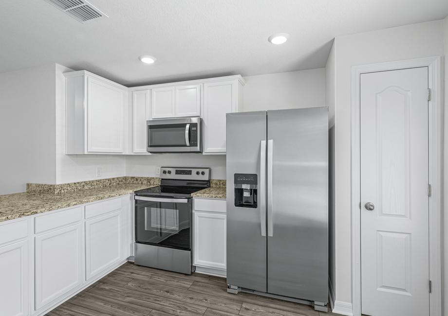 The Vero floor plan at Palm Bay was designed to surpass all expectations with a variety of upgrades included at no extra cost to you. As part of LGI’s CompleteHome™ package, a modern take on additional style and convenience is featured throughout the home. Upon moving in, LGI homeowners will be able to use the already-installed Whirlpool® appliances, such as the refrigerator, glass stove and microwave. Stunning granite countertops and 36” upper-wood cabinets with crown molding are just a few other remarkable upgrades that complete the heart of the home. In addition, a programmable thermostat, designer coach lighting, double-pane Low-E vinyl windows and a Wi-Fi-enabled garage door opener give even more features and finishes that today’s homebuyers are looking for.