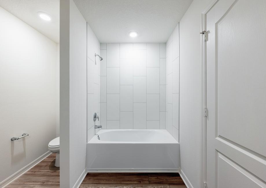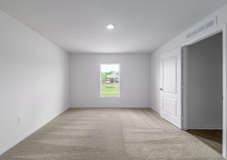 Secluded in its own space, the massive master bedroom opens up to an entirely new section of the home. The double window overlooking the back yard brings in an abundance of light and life to this expanded space. On the other end of the room, the private master retreat leads to the full bathroom complete with a breathtaking walk-in closet, plenty of vanity space and an additional bonus closet for extra storage.