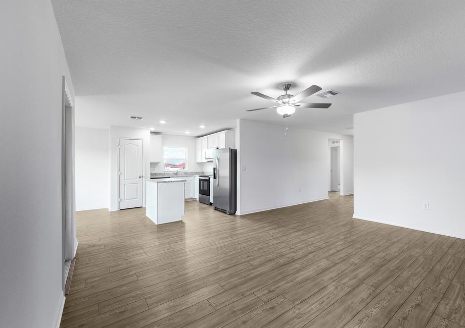 The beautiful Amelia by LGI Homes has an abundance of highly sought-after features throughout the home. Two spacious bedrooms surround the first full bathroom, the perfect layout for families and guests staying over. To the side, a separate laundry room connected to the massive two-car garage gives additional convenience to this upgraded floor plan. Look forward to sharing meals and memories for years to come thanks to the large entertainment space located from the kitchen to the family room – a great area for hosting get-togethers! And of course, rounding out this home are the exterior features such as a covered back patio, two-car garage and beautiful front yard landscaping.