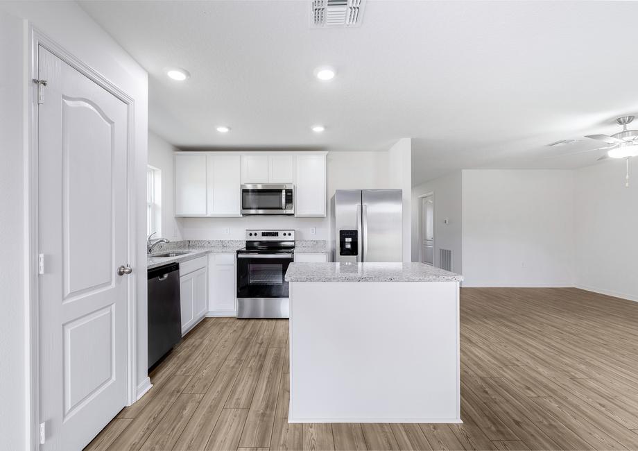 The beautiful Amelia plan by LGI Homes is located within the gorgeous community of Poinciana. This new one-story home features an open floor plan, 3 bedrooms and 2 full baths complete with incredible upgrades including energy-efficient Whirlpool® appliances, granite countertops, stunning wood cabinets with crown molding and an attached two car garage. The Amelia encompasses a master suite complete with a spacious walk-in closet, as well as a utility room, covered back patio and front yard landscaping.