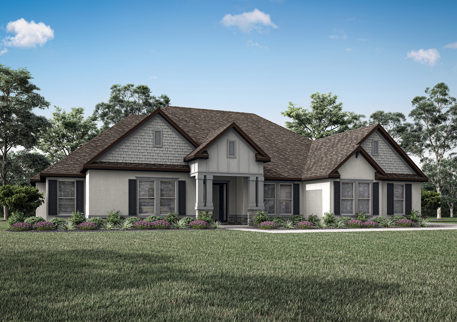 At the heart of The Mantle, the kitchen commands attention. A large angled island creates both architectural interest and a central gathering point, overlooking the breakfast area and spacious family room. The walk-in pantry offers generous storage, keeping the kitchen effortlessly organized. Just off the foyer, a formal dining room provides a refined setting for holidays and celebrations, while the media room tucked along the secondary bedroom hallway becomes the ultimate movie-night destination. A dedicated tech area near the master suite offers space for homework, remote work, or household organization. French doors open from the breakfast area to the covered outdoor kitchen, extending your living space outdoors and creating the perfect setting for year-round entertaining.A Private Retreat Designed to Recharge