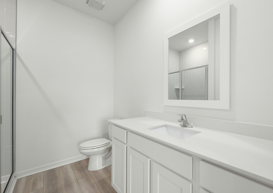 The master retreat offers you the peace and relaxation you have been dreaming of. Enjoy scenic views of your backyard, a spacious closet and a private bath. A spacious gorgeous vanity with great countertop and cabinet storage and a step-in shower are featured in the bathroom.