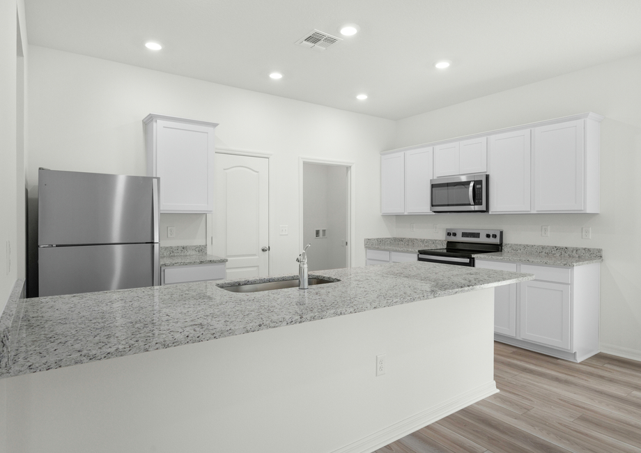 The Useppa plan comes with a host of impressive upgrades and features as part of our CompleteHome™ package, all included at no extra cost. Upgrades include a full suite of energy-efficient Whirlpool® kitchen appliances, sprawling granite countertops, designer wood cabinets with crown molding detail, and recessed lighting, just in the kitchen! Throughout the home, you will find upgrades such as luxury vinyl-plank flooring, programmable thermostats and a Wi-Fi-enabled garage door opener.