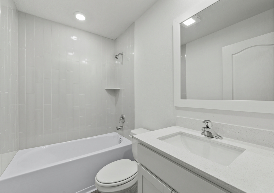 New homeowners will love the secluded master retreat located on the second floor. This bedroom has two separate walk-in closets, giving you more than enough room for your wardrobe and extra storage. Also, the master bath features a double sink vanity and a step-in shower. Move-in ready, the Bay plan allows new homeowners to focus on turning this space into their dream home.