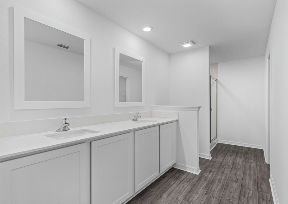 This new home at Noah Estates at Tuscany Preserve boasts a total of three bedrooms and two-and-a-half baths. The two-story Glades floor plan hosts plenty of room and is perfect for hosting events. Each bedroom features a walk-in closet for additional convenience. The master bedroom has its own bathroom with a shower and dual sink vanity, a linen closet, and a walk-in closet. The Glades is move-in ready, meaning new homeowners can enjoy all that it has to offer right away!