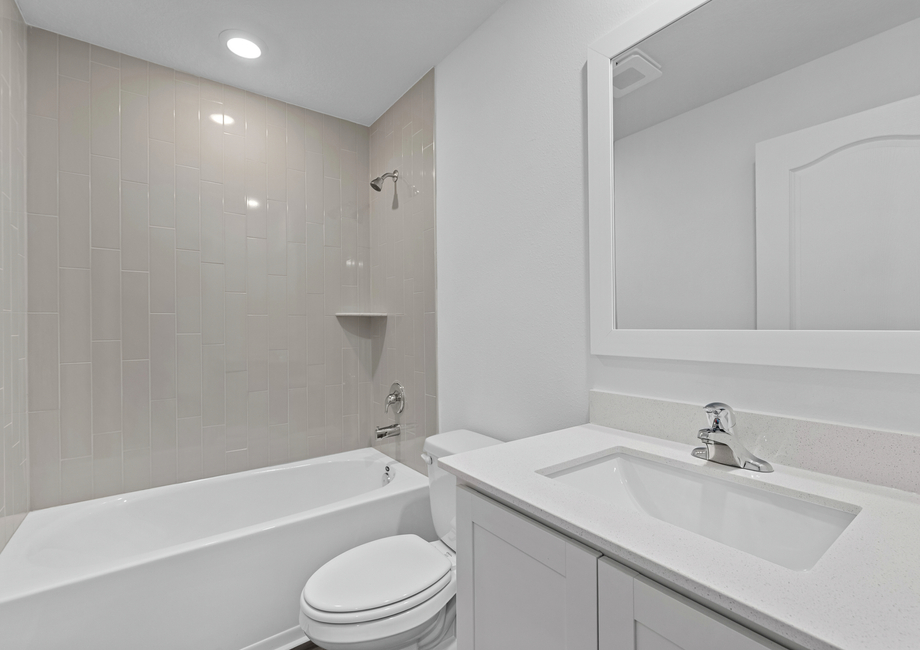 The Glades floor plan showcases impressive upgrades at no extra cost to you, as part of the CompleteHome™ package. Residents and guests will fall in love with the full suite of brand-new Whirlpool® appliances, including the refrigerator, built-in dishwasher, stove, microwave and more. The Glades kitchen also features 36" upper-wood cabinets with crown molding and LED flush mount ENERGY STAR kitchen lights to add a gorgeous finish.