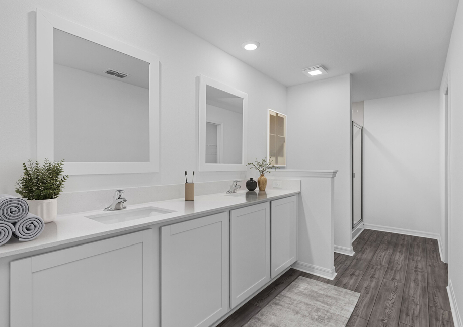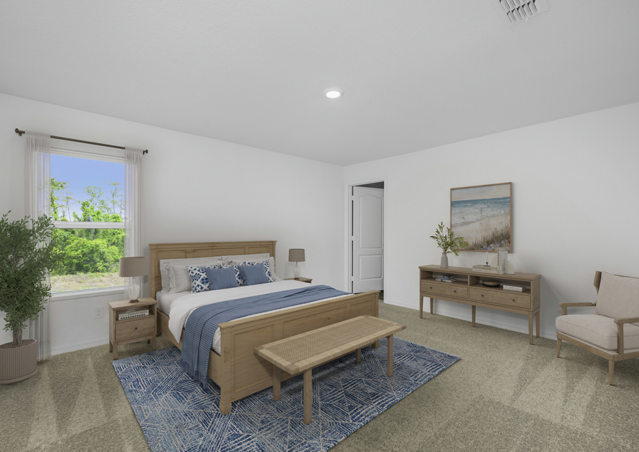 This new home at Noah Estates at Tuscany Preserve boasts a total of three bedrooms and two-and-a-half baths. The two-story Glades floor plan hosts plenty of room and is perfect for hosting events. Each bedroom features a walk-in closet for additional convenience. The master bedroom has its own bathroom with a shower and dual sink vanity, a linen closet, and a walk-in closet. The Glades is move-in ready, meaning new homeowners can enjoy all that it has to offer right away!
