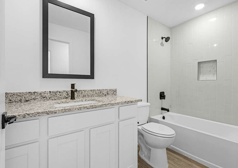Constructed with luxury and quality in mind, the Tortuga’s completed master bedroom is sectioned off on its own. Double-pane windows let in light while the finished master bath provides even more to love. A double-sink vanity, a step-in shower and a separate soaker tub can be found in the master bath in addition to the walk-in closet. Move-in ready, the Tortuga plan comes fully loaded with features that will exceed your expectations.