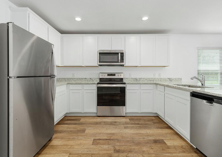 Crafted for efficiency and beauty, the Estero’s upgrades come already included at no extra cost to you. This is part of LGI Homes’ CompleteHome™ package, our unique approach to modern style. An full suite of energy-efficient Whirlpool® appliances, including the refrigerator, stunning granite countertops, 36” upper-wood cabinets with crown molding, Moen® faucets and LED flush mount ENERGY STAR kitchen lights are just a few of the remarkable features that are showcased.