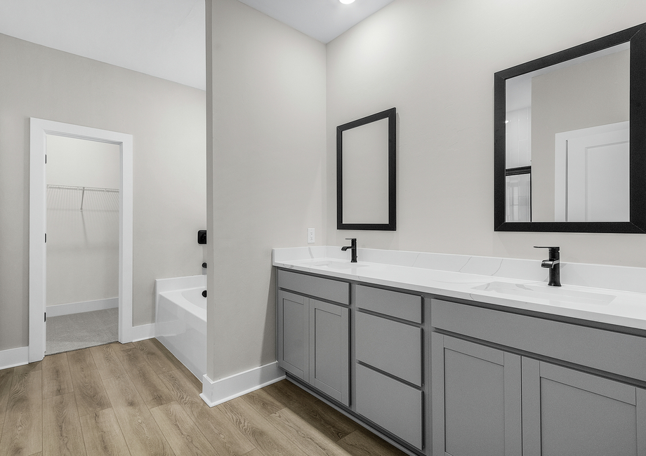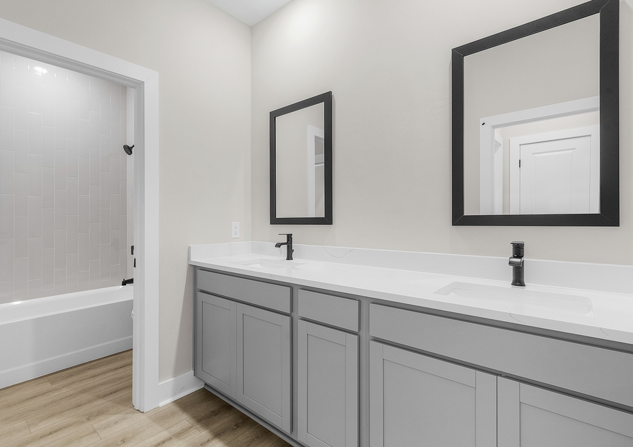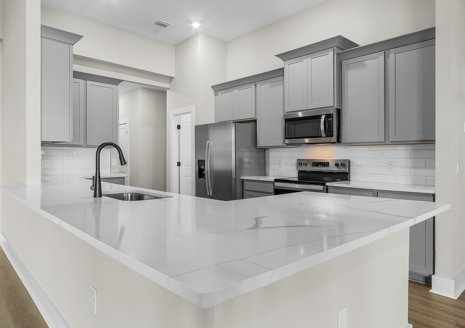 A covered front porch leads to a massive entertainment space, where a family room, dining room and chef-ready kitchen overlook the covered back patio. Hosting is made easy here and in the heart of the home, where a full suite of new Whirlpool® appliances are ready to be used. Upper-wood cabinets with crown molding, quartz countertops and a kitchen island make for even more eye-catching details we know you will love.