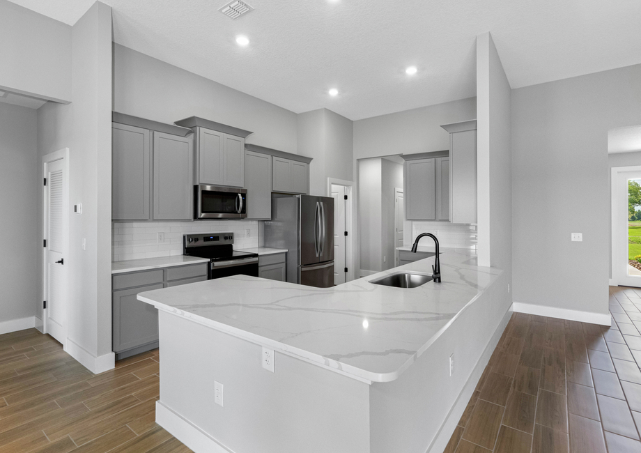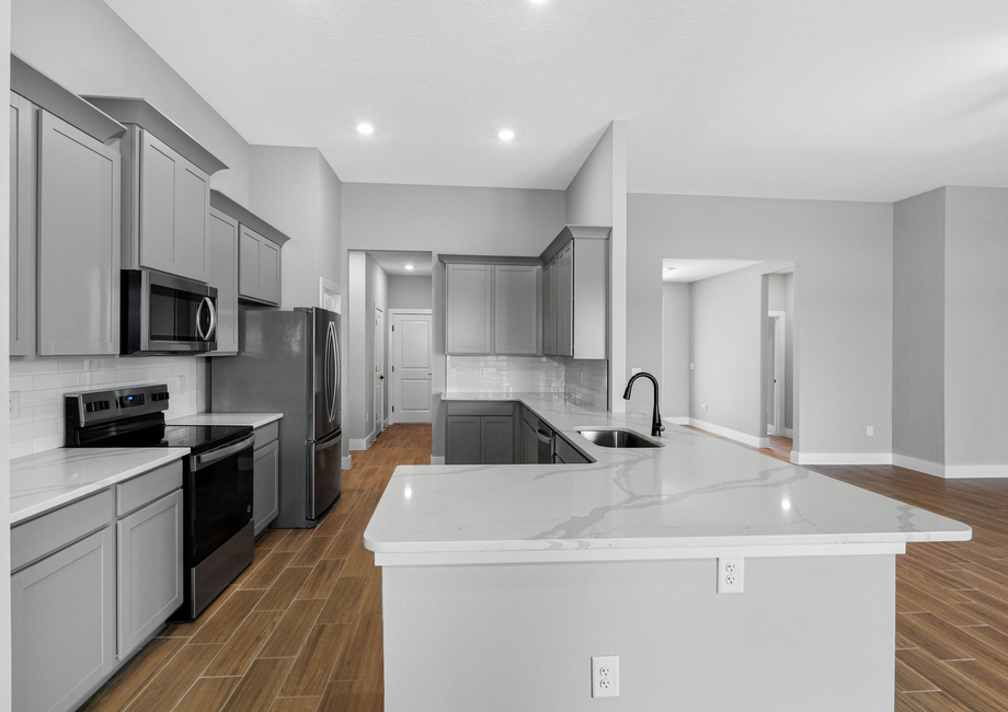 High-quality upgrades are found throughout this brand new home. As part of LGI's CompleteHomePlus™ package, these features come included at no extra cost to you. This modern take on added style and convenience consists of quartz countertops and an array of energy-efficient Whirlpool® appliances, such as the refrigerator, stove and microwave. The 42" upper-wood cabinets with crown molding, Moen® faucets and LED flush-mounted ENERGY STAR kitchen lights are astonishing. In addition to an already unbeatable array of design, the Palm Beach offers programmable thermostats, designer coach lighting, double-pane Low-E vinyl windows and a Wi-Fi-enabled garage door opener.
