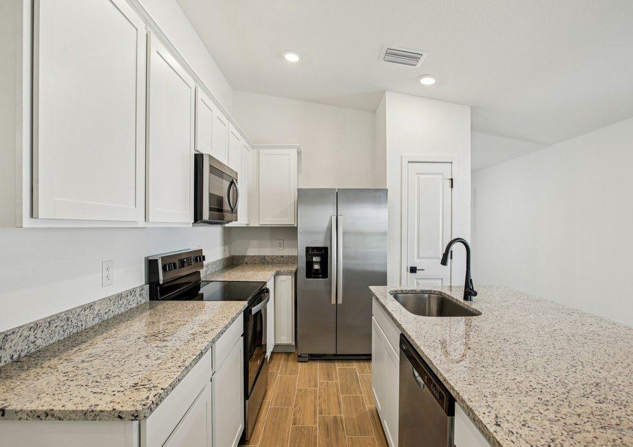 The Hillsborough at Trilby Crossing is outfitted with the coveted LGI Homes’ CompleteHome™ package that gives you incredible upgrades at no additional cost. The package includes a Wi-Fi-enabled garage opener, USB outlet in the kitchen, sprawling marble countertops, a suite of Whirlpool® stainless steel appliances, and much more!