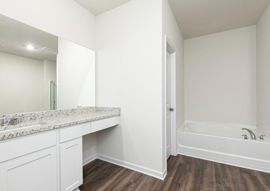 Take pleasure in coming home to an incredible master suite that offers you the perfect space for rest and relaxation after a long day. The master bedroom accommodates king-sized furniture with extra space to spare. Attached to the bedroom are his and her closets, along with an incredible master bathroom that includes a soaking tub and walk-in shower.