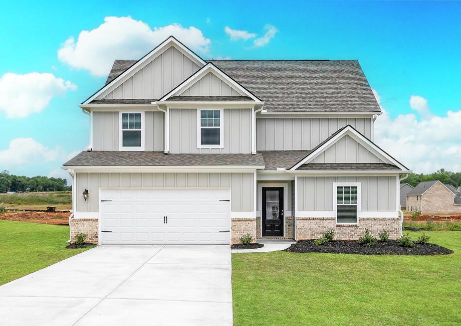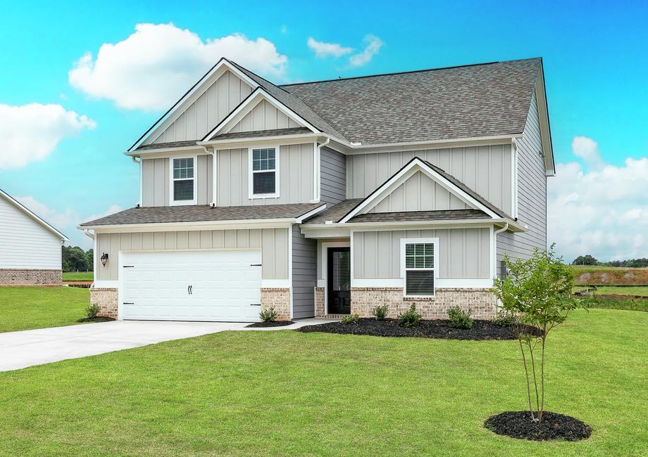 The Hartwell floor plan has a stunning exterior and there is lots to love from the shutters to the garage hardware and the beautiful landscaping. The covered front porch is a charming feature that adds a touch of southern charm to the beautiful exterior.