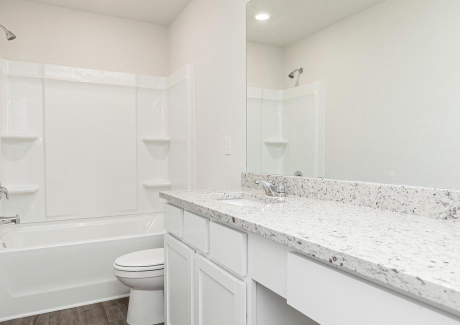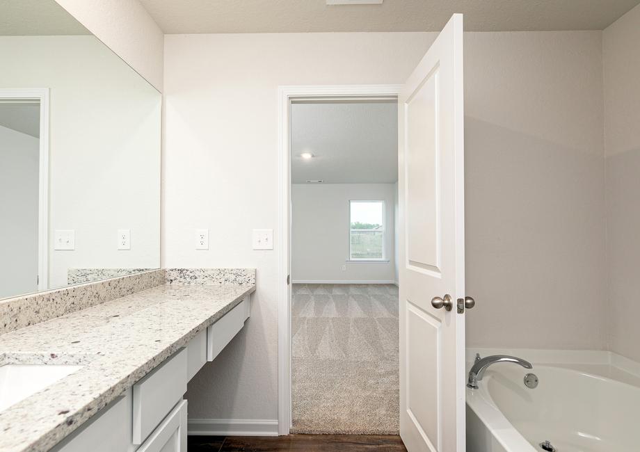 The large master bedroom in the Hartwell is perfectly positioned on the opposite side of the remaining bedrooms for a supreme level of privacy that any homeowner will love. The finishing touches on the master bedroom include a separate shower and tub and a large walk-in closet!