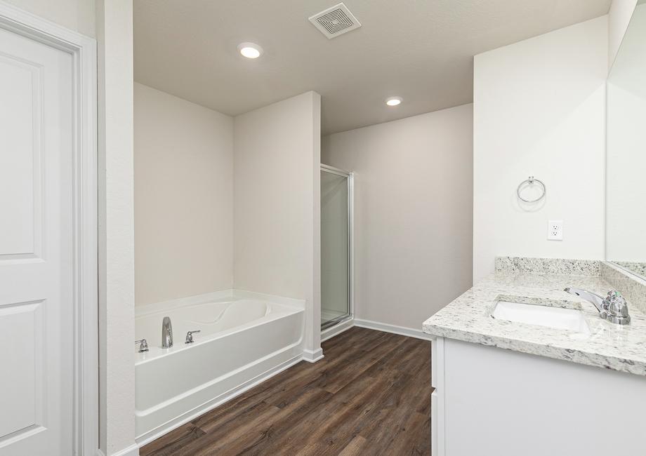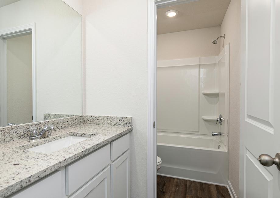 Serving as the ideal floor plan for entertaining guests and loved ones, get togethers of any kind can take place in the Jackson floor plan. A large family room stretches to the kitchen’s breakfast nook and overlooks the covered back patio, where outdoor gatherings are welcomed. In the heart of the home, a chef-ready kitchen awaits with a full suite of all new Whirlpool® appliances, gorgeous granite countertops and upper-wood cabinets. Sectioned off on their own, a formal living and dining room provide an abundance of extra space to host or unwind on the first floor of this retreat.