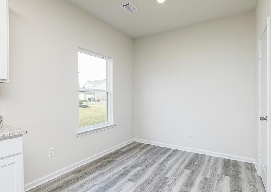 One of the star features of the Burton is all of the open space to enjoy your day. Next to the kitchen is a breakfast area, perfect for setting up a small table to eat the most important meal of the day with your loved ones at. The covered back patio is provides a serene setting to enjoy your morning cup of coffee in peace.