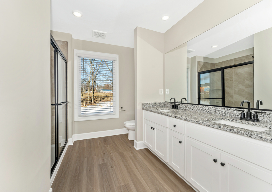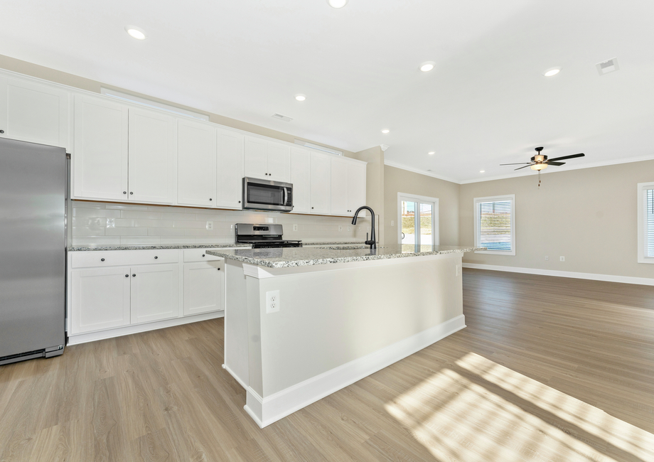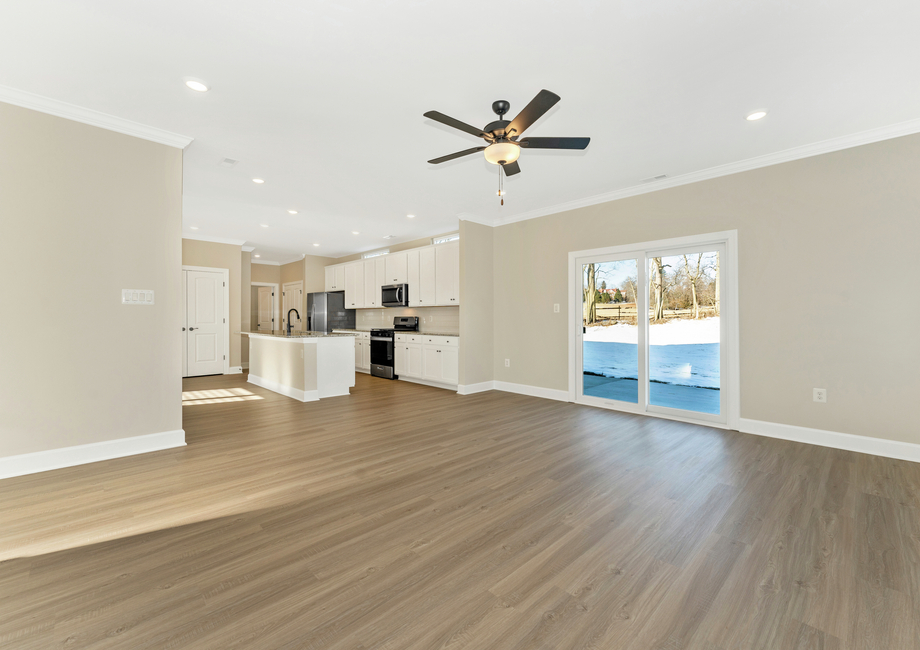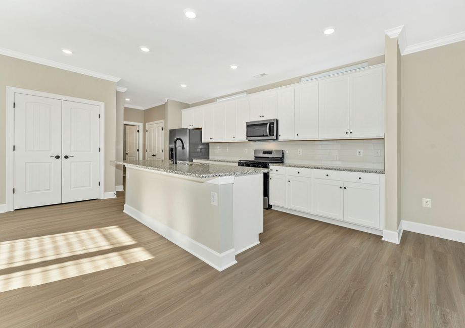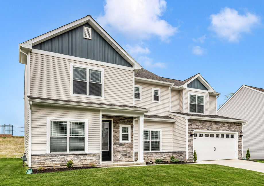 The Franklin floor plan makes a striking first impression with its refined stone detailing and welcoming two-car garage. The stone-accented exterior lends a classic yet modern look that enhances the home’s curb appeal, while the covered entryway sets a warm tone for guests and family alike. This timeless exterior design not only adds charm but also complements the Franklin’s spacious and practical layout within.