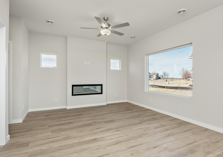 The Foster welcomes guests with a charming exterior featuring large windows, open layout and an upstairs loft. Step inside and experience a huge open space for the family room and chef ready kitchen. Offering plenty of flexibility for various furniture layouts and focal points, this room creates the perfect canvas for expressing your decorating flair.