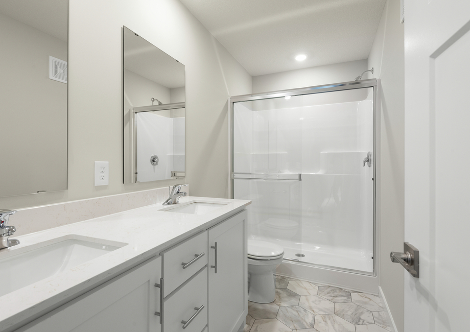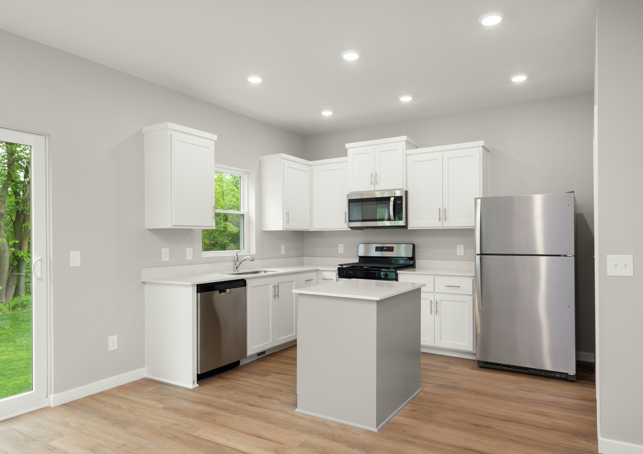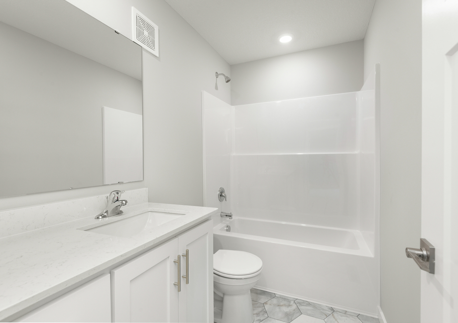 The Granite plan at Northridge is every chef’s dream! The breathtaking kitchen is fully equipped upon move-in with a complete suite of stainless-steel Whirlpool® appliances, including a refrigerator, as well as sprawling quartz countertops. Preparing your family’s favorite meals is a breeze in this thoughtfully designed space. Additionally, the oversized white cabinetry provides ample storage for all your cookware, dinnerware, and pantry essentials.