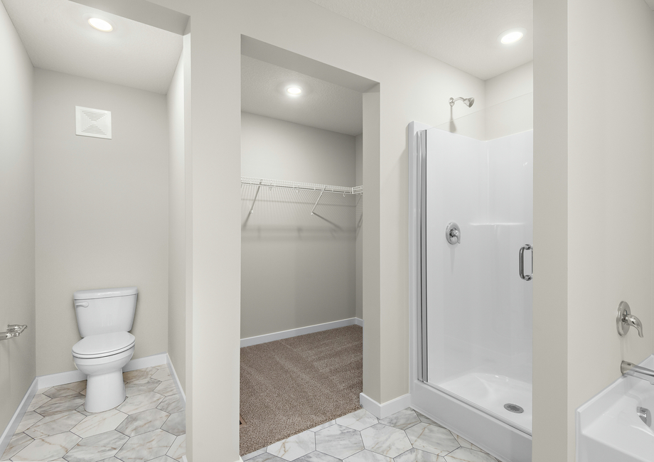 The Harris plan features the perfect kitchen for culinary enthusiasts and entertainers alike. The open layout provides ample space to move and gather while cooking, while the sprawling quartz countertops make meal prep and serving a breeze. Outfitted with a full suite of stainless-steel Whirlpool® appliances, including a refrigerator and oven, this kitchen also includes oversized wood cabinetry and recessed LED lighting, creating a bright and functional space.