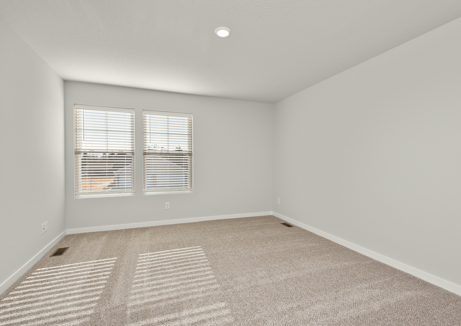 The Foster welcomes guests with a charming exterior featuring large windows, open layout and an upstairs loft. Step inside and experience a huge open space for the family room and chef ready kitchen. Offering plenty of flexibility for various furniture layouts and focal points, this room creates the perfect canvas for expressing your decorating flair.