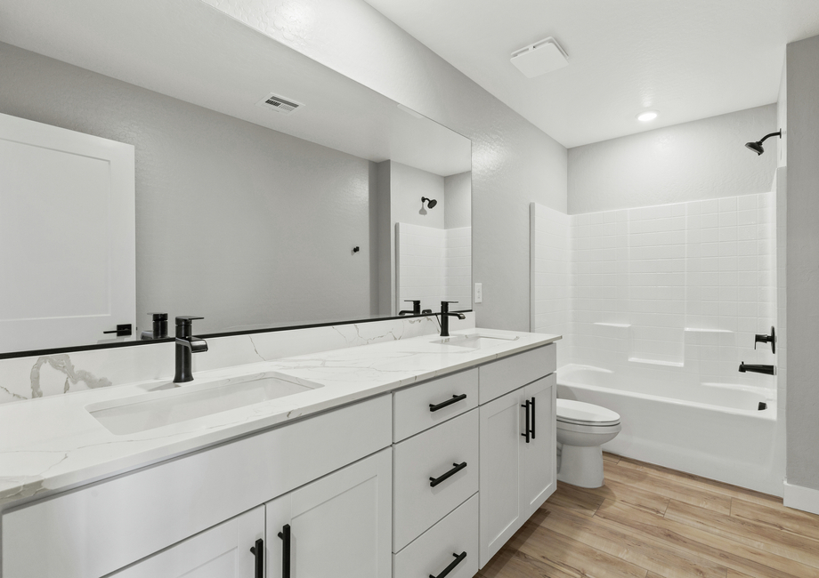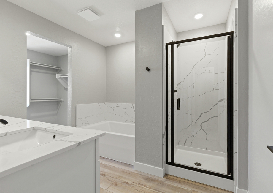 The Tahoe floor plan features all bedrooms conveniently located upstairs, providing a private and quiet retreat away from the main living areas. The spacious bedrooms offer plenty of room for getting ready for the day or unwinding after a long week. The master bedroom seamlessly connects to the private, luxury, master bathroom with a dual vanity sink and a glass enclosed shower, as well as a spacious walk in closet.