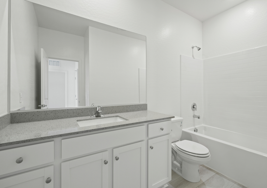 The Castle floor plan is available now for quick move-in at Hollywood Springs! This beautiful, one-story home is perfect for growing families and features three large bedrooms and two bathrooms. The back patio is perfect for enjoying the outdoors and the open-concept layout is highlighted by a chef-ready kitchen with sprawling quartz countertops and recessed lighting. Schedule your tour today and prepare to fall in love with the welcoming and comfortable layout of this beautiful single-story home.