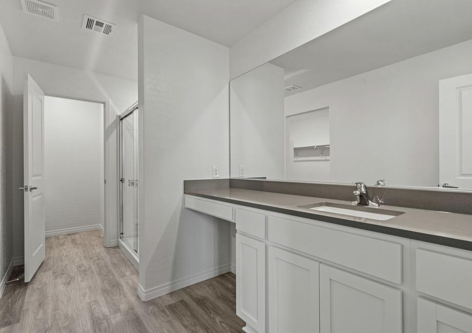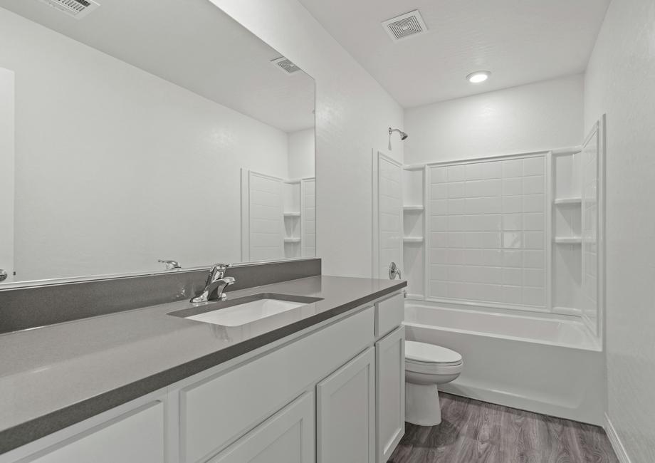The Hawthorne plan at Sienna Square features LGI Homes’ incredible CompleteHome™ package. Included in the package are Whirlpool® kitchen appliances, including the refrigerator, microwave, stove and dishwasher. Quartz countertops and 36” upper wood cabinets with crown molding are other upgrades found in the heart of the home. Recessed lighting, a Wi-Fi-enabled garage door opener and front yard landscaping are just a sampling of other popular upgrades that come standard in this brand-new home.