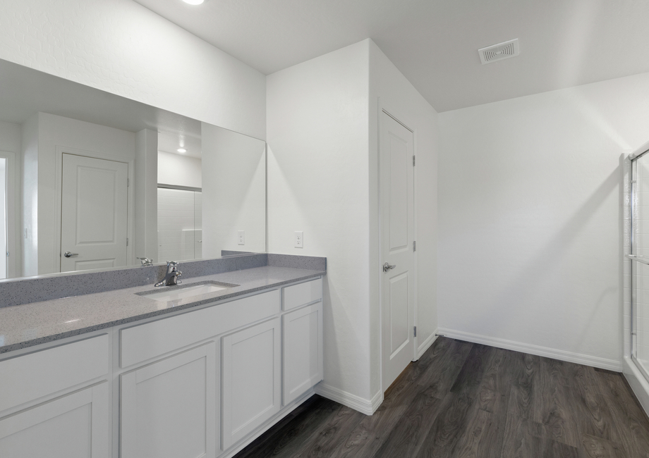 At the end of a long day, homeowners will love retreating to the expansive master suite. The bedroom features a generous layout, easily accommodating a king-size bed and dresser, providing an ideal space for rest and relaxation. Enhanced with designer fixtures, the master bathroom elevates your daily routine. Completing the suite is a spacious walk-in closet, offering abundant storage and organization options for every item in your wardrobe.