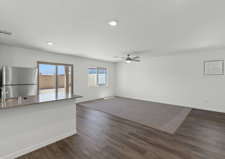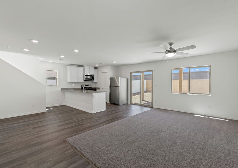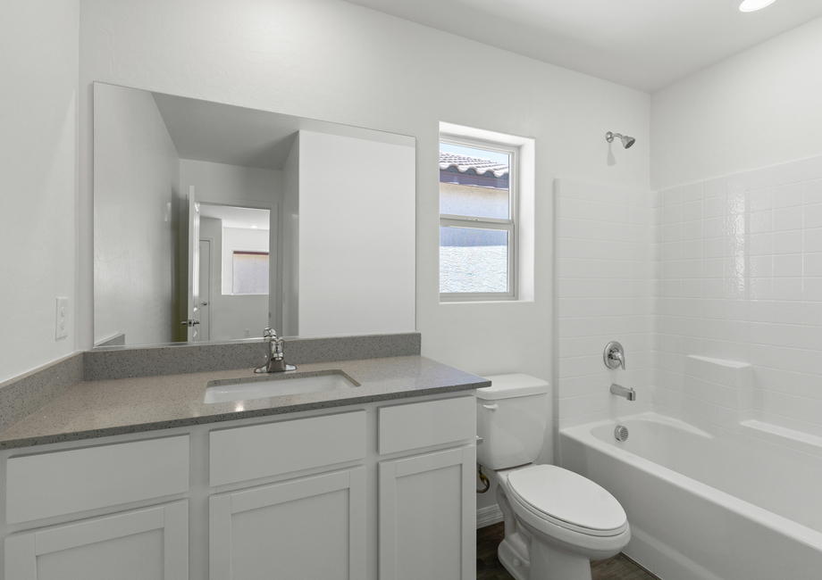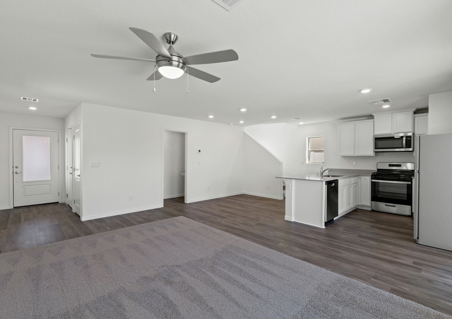 The Juniper's open floor plan seamlessly integrates the kitchen, dining room, and centrally located living room, accommodating daily living and hosting guests. The kitchen boasts a bright, open layout and stunning quartz countertops, ideal for preparing both family meals and refreshments for guests. Large windows in the dining and living areas provide views of the back patio and yard, extending entertainment outdoors. With open living spaces including the family room, cozy dining area, and beautiful kitchen on the first floor, you will never miss a moment of the fun. Upstairs, generously sized bedrooms and a conveniently located laundry room ensure comfort and convenience for everyday living.
