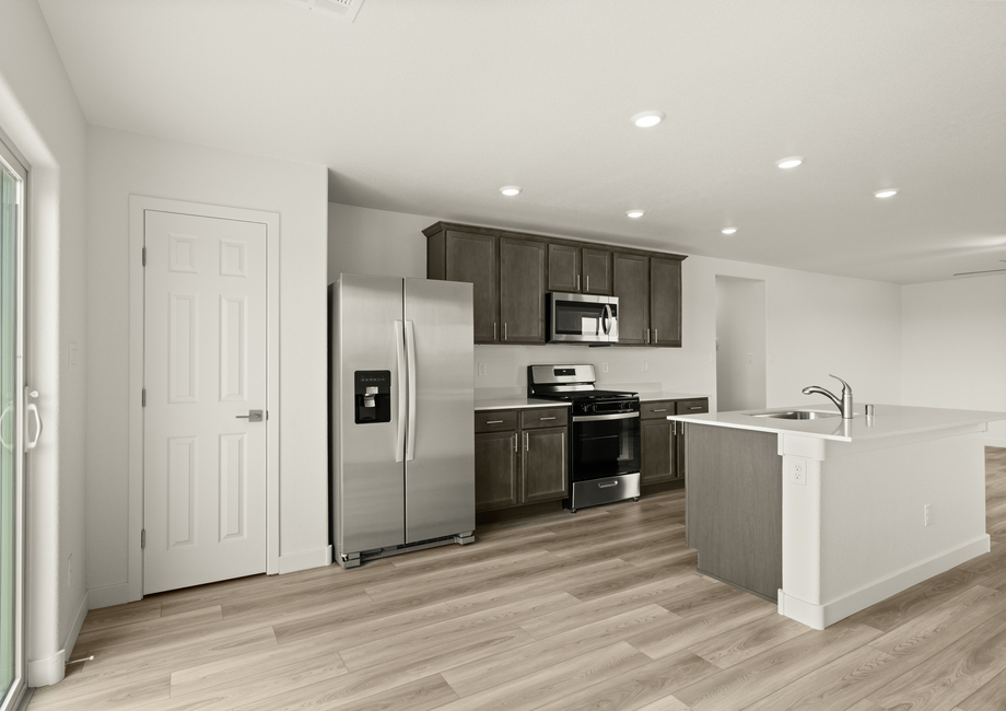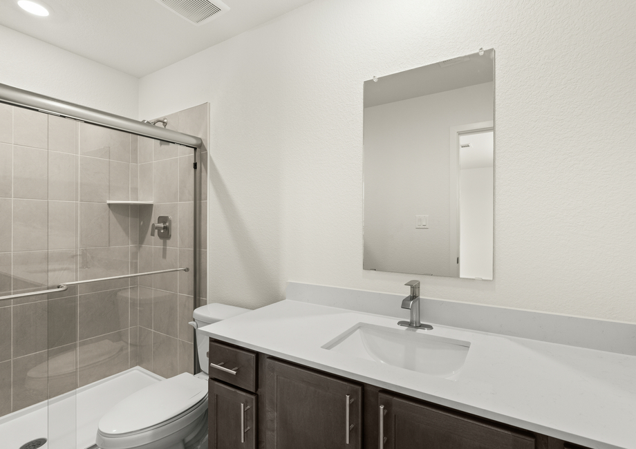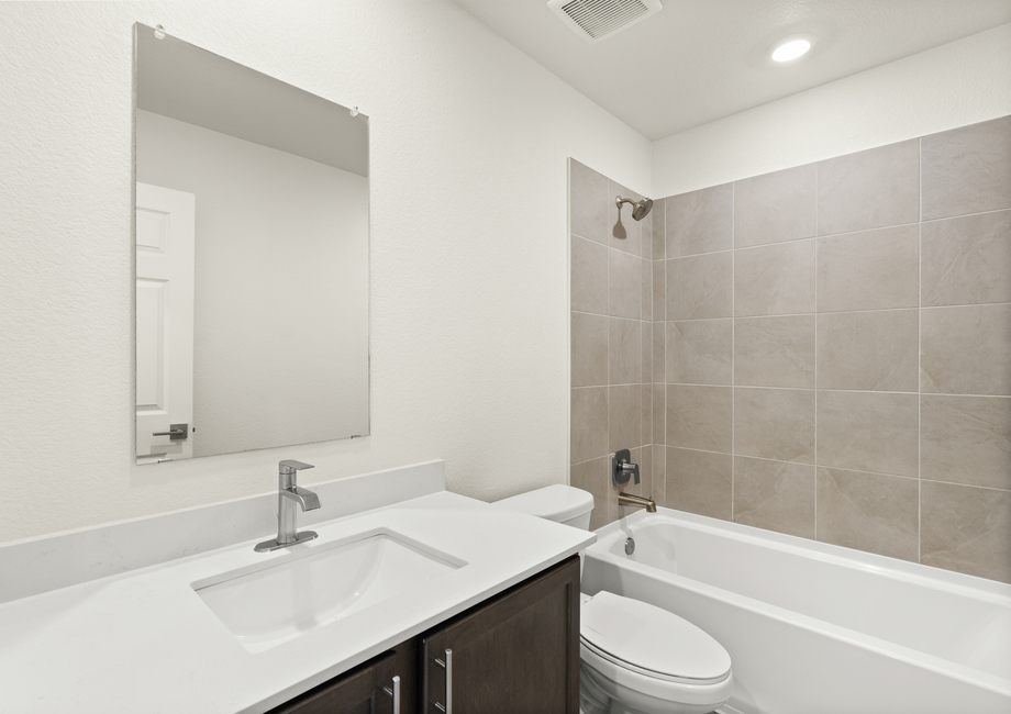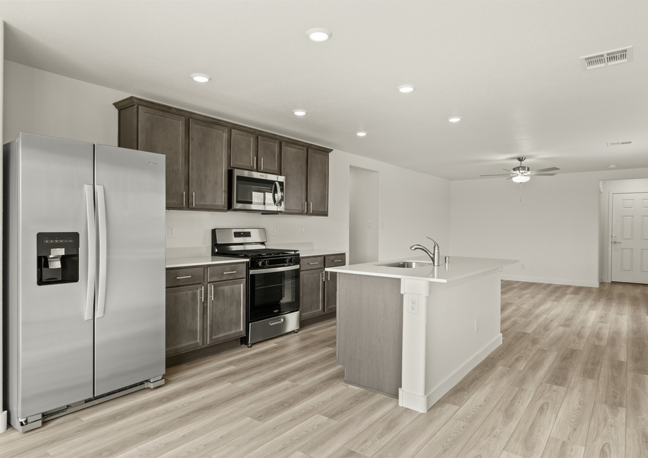 The Bennett floor plan has a kitchen of every homeowner’s dream! Complete with beautiful quartz countertops, wood cabinetry with crown molding, recessed lighting and stainless steel Whirlpool® appliances, the kitchen is truly the centerpiece of the home. With a spacious kitchen island and energy-efficient features, preparing your favorite meals has never been more enjoyable.