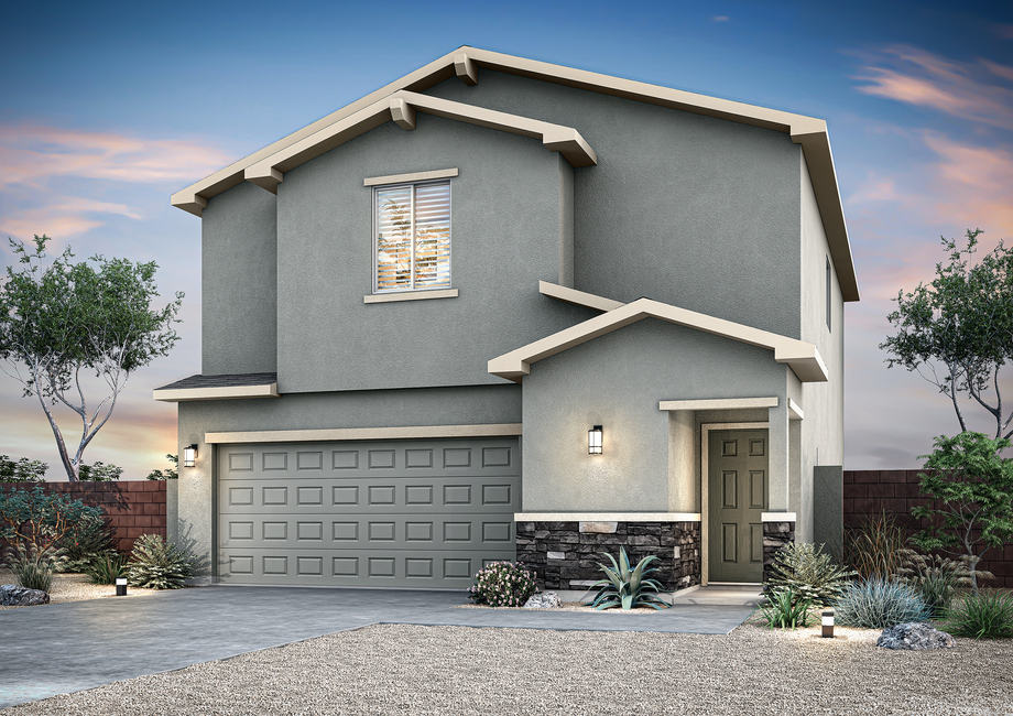Discover the Mesquite at Estrella at High Range, a beautiful two-story home featuring an open-concept layout and modern finishes throughout. This floor plan showcases a spacious master suite complete with a large walk-in closet and private en-suite bathroom, an upstairs tech area, laundry room, and three additional spacious bedrooms. With a beautiful kitchen and separate dining room area, this floor plan is the perfect space for you and your family.