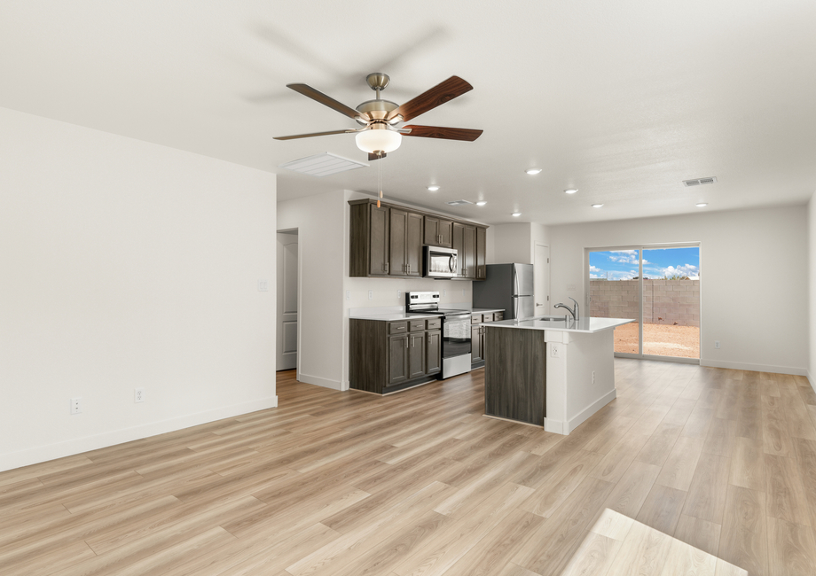 The efficient layout of the Brazos was designed with functionality and ease in mind. The openness of the kitchen and adjoining family room creates easy movement from mealtime to family time. Two secondary bedrooms are positioned to create privacy for guests, as well as the master suite located in a private corner of its own to give you the space you need.