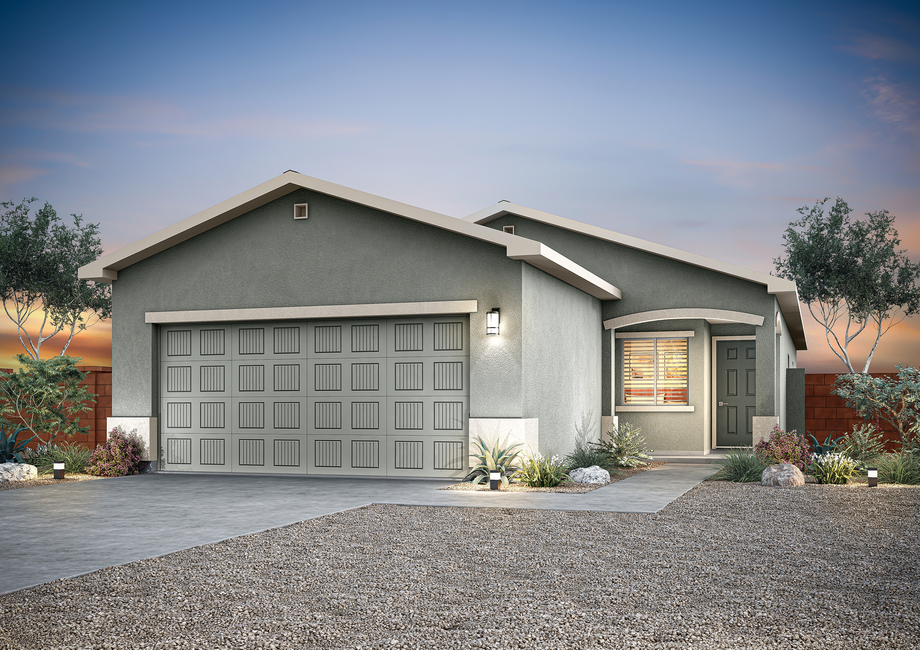 The welcoming covered front porch of the Ironwood is a charming first impression, offering an inviting area for guests. The gorgeous stucco exterior enhances the porch’s appeal, creating a stylish and comfortable space within. The front porch is the perfect touch to make coming home a delightful experience.