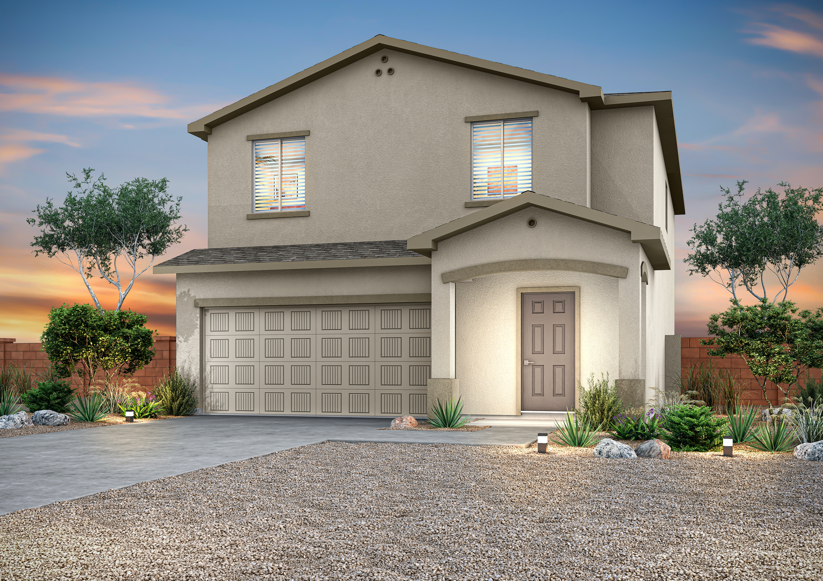 The Palo Verde is a beautiful two-story home in the family-friendly Vistas at Los Senderos community, featuring 5 bedrooms and 3 baths. Highlights include a chef-ready kitchen with a large island, walk-in pantry, energy-efficient appliances, and wood cabinetry, plus an attached 2-car garage. The first floor offers a spacious family room and private guest suite, while upstairs boasts a luxurious master with an impressive walk-in closet. You will love living in the Palo Verde!