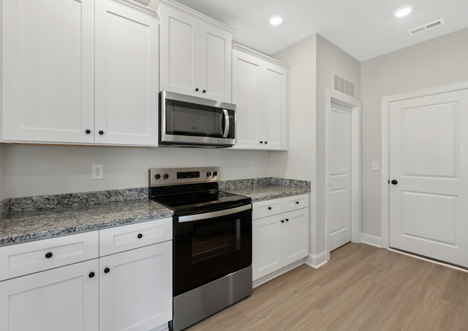 The Ashe floor plan is thoughtfully designed for hosting, featuring an open-concept layout and a stunning chef-ready kitchen. With granite countertops, elegant cabinetry, and a complete set of stainless steel appliances, the kitchen perfectly balances functionality and style. The spacious kitchen island overlooks the living room, allowing seamless interaction with guests while preparing meals. Whether you're planning casual get-togethers or formal dinners, the Ashe provides ideal spaces for entertaining, including a cozy dining area and open-concept living area.