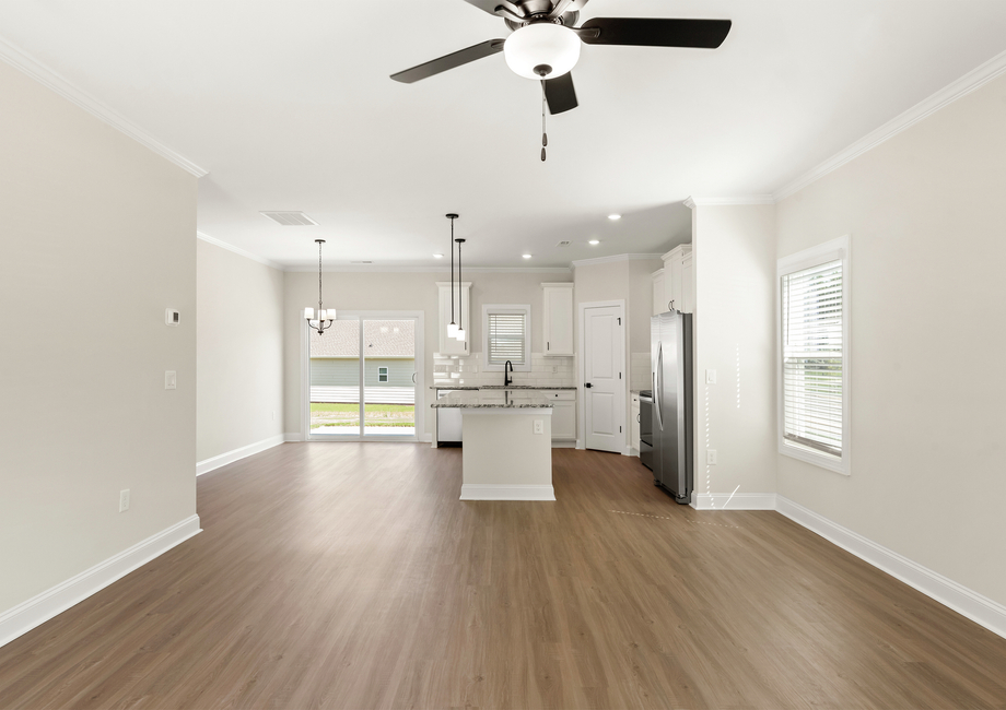 Within the Birch plan lies the living area of your dreams. The spacious living room elevates game nights to a new level with enough space for everyone. The living room flows into the kitchen and dining room, making it the perfect house for hosting friends and family for every occasion.