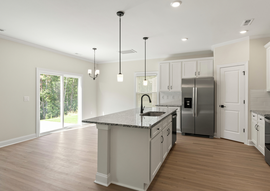 The Davidson floor plan has a spacious and airy feel that has been thoughtfully designed with your needs in mind. The large chef-ready kitchen is open to the dining area and family room, creating a seamless open layout. You will find a host of upgrades in the kitchen including stainless steel kitchen appliances, gorgeous granite countertops, 42” upper cabinets with brushed nickel hardware and a large island.Incredible Master Suite